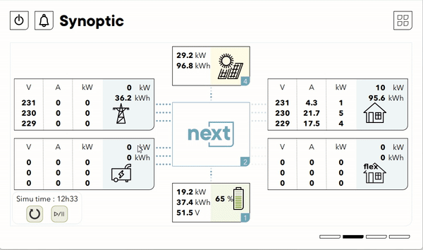 • Es ist auch für große Anlagen interessant, da nicht immer die volle Leistung mit dem Notstrom-Wechselrichter gewünscht ist. Beispielsweise würde eine 50-kW-Solaranlage mit 30 kW Notstromkapazität über zwei parallel geschaltete next3-Geräte und einen Netzwechselrichter mit bis zu 30 kW Solarleistung verfügen.